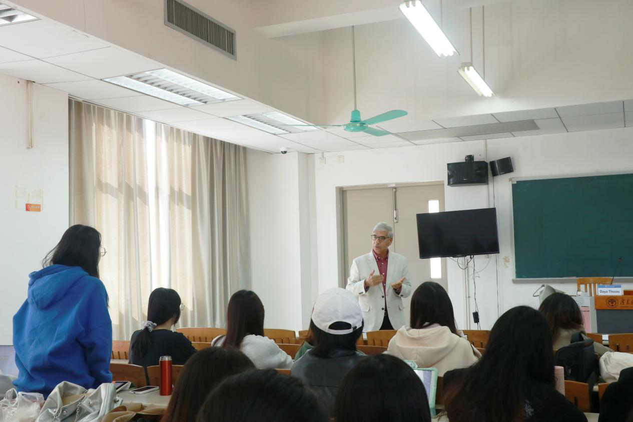 在交流互动环节,同学们就中华文化在全球传播的限制与突破方向等问题向Thussu教授进行提问,他悉心解答并分享了自己的观点与建议。
