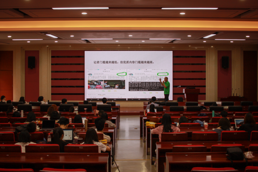 本次讲座主要讨论数字传媒时代中新闻从业者的行业需求和职业转变。王同业从资深记者、制片人的角度出发,深入剖析了移动互联网给新闻传播行业带来的深刻变革,结合自身在中央电视台和海外的新闻工作经验,通过中央电视台《新闻调查》的报道案例,深入浅出地为同学们讲解了作为新媒体时代的新闻人所面临的生存环境,所应具备的职业素养,所需把控的新闻质量。