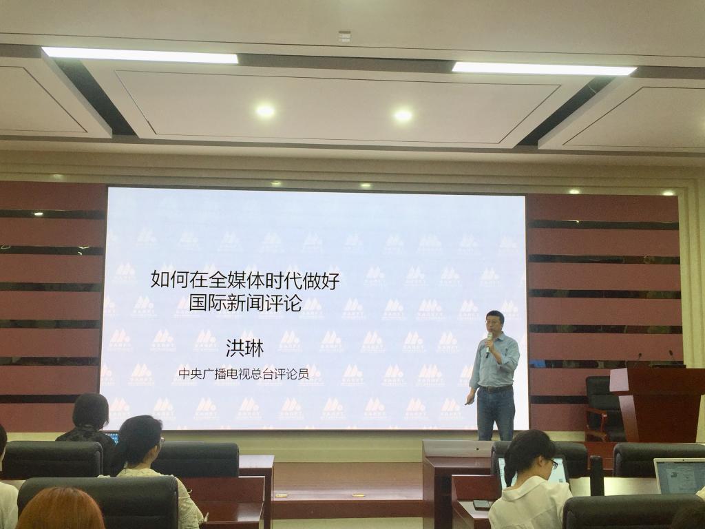 洪琳老师就“如何在全媒体时代做好国际新闻评论”开展讲座