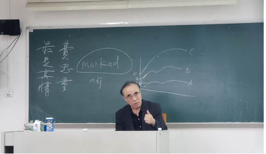 杨教授向同学们讲述新闻的表达