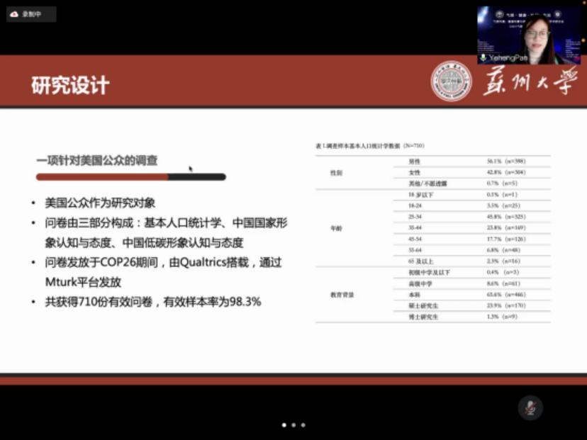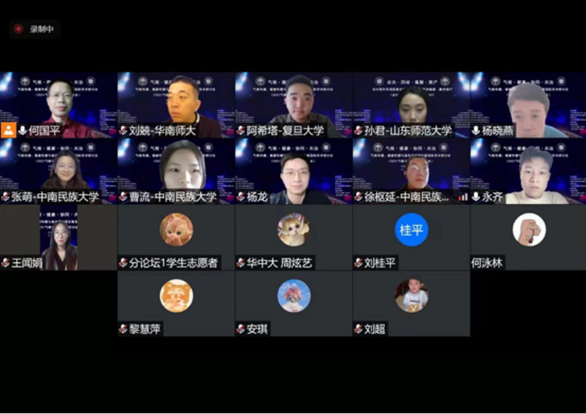 分论坛上,专家学者与研究生汇聚云端,围绕各自分论坛主题展开热烈的讨论。复旦大学伟德国际1949博士后阿希塔讲师、中国地质大学(武汉)艺术与传媒学院李静特任副教授、苏州大学传媒学院潘野蘅讲师、黄淮学院文化传媒学院刘文琦讲师、中央财经大学绿色金融国际研究院任国征研究员分别作了《植绿还是漂绿?企业环保的认知、表征与动员——基于中国创新创业大赛沙产业大赛的传播民族志考察》《气候变化与雾霾如何在媒体报道中关联:议题互动与风险重构》《中国国家气候形象的现状与问题——基于美国调查数据的实证分析》《数字化时代城市书房发展研究》《健康环境视野下的清洁生产模式与建议》等主题分享,各高校的研究生同样带来了自己对议题的思考,多学科的思想在此碰撞与交汇。