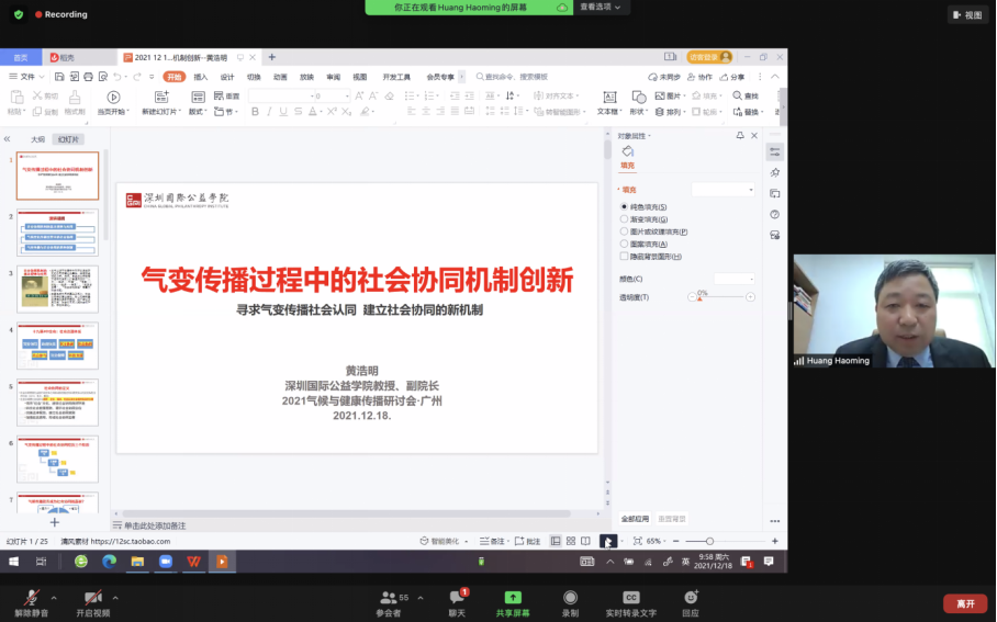 开幕式由广东外语外贸大学伟德国际1949院长、广州城市舆情治理与国际形象传播研究中心主任侯迎忠教授主持。侯院长对各位境内外专家学者齐聚云端,共同研讨气候变化、健康传播与城市可持续发展的相关问题表示热烈欢迎。