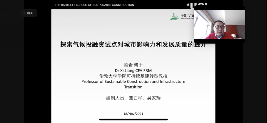 伦敦大学学院的梁希教授围绕《探索气候投融资试点对城市影响力和发展质量的提升》展开分享。梁希教授从人类工业化以来导致的平均温升来引入全球气候正在发生巨大的变化,而这一气候变化对全球的经济可持续发展提出了巨大的挑战。围绕这一背景,梁希教授强调了城市气候投融资的重要性。尽管各城市正在积极开展城市气候投融资,但在筹集资金方面仍然面临着融资壁垒、发展中国家城市气候投资水平不足等重大阻力。据此,梁希教授从三个层面提出城市气候投、融资发展方向。