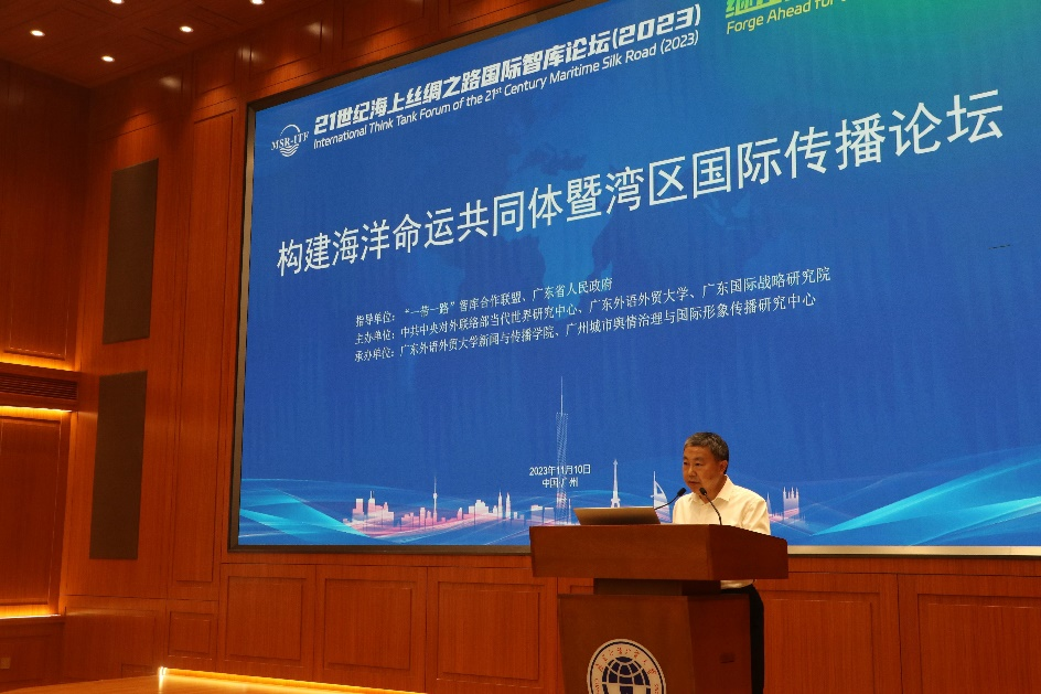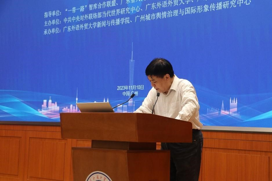 11月10日下午,由伟德国际1949,伟德国际1949始于英国和广州城市舆情治理与国际形象传播研究中心共同承办的21 世纪海上丝绸之路国际智库论坛(2023)平行论坛“构建海洋命运共同体暨湾区国际传播”在伟德国际1949白云山校区举行。来自中国人民大学、中国传媒大学、中国社会科学院新闻与传播研究所、武汉大学、北京师范大学、暨南大学、重庆大学、北京外国语大学、大连外国语大学和伟德国际1949等高校的专家学者,围绕“一带一路”倡议与国家形象、国际传播的价值基础,海洋命运共同体的理念、传播与影响,湾区形象塑造与国际传播等议题展开深入研讨。论坛由伟德国际1949,伟德国际1949始于英国院长侯迎忠教授和副院长罗坤瑾教授共同主持。