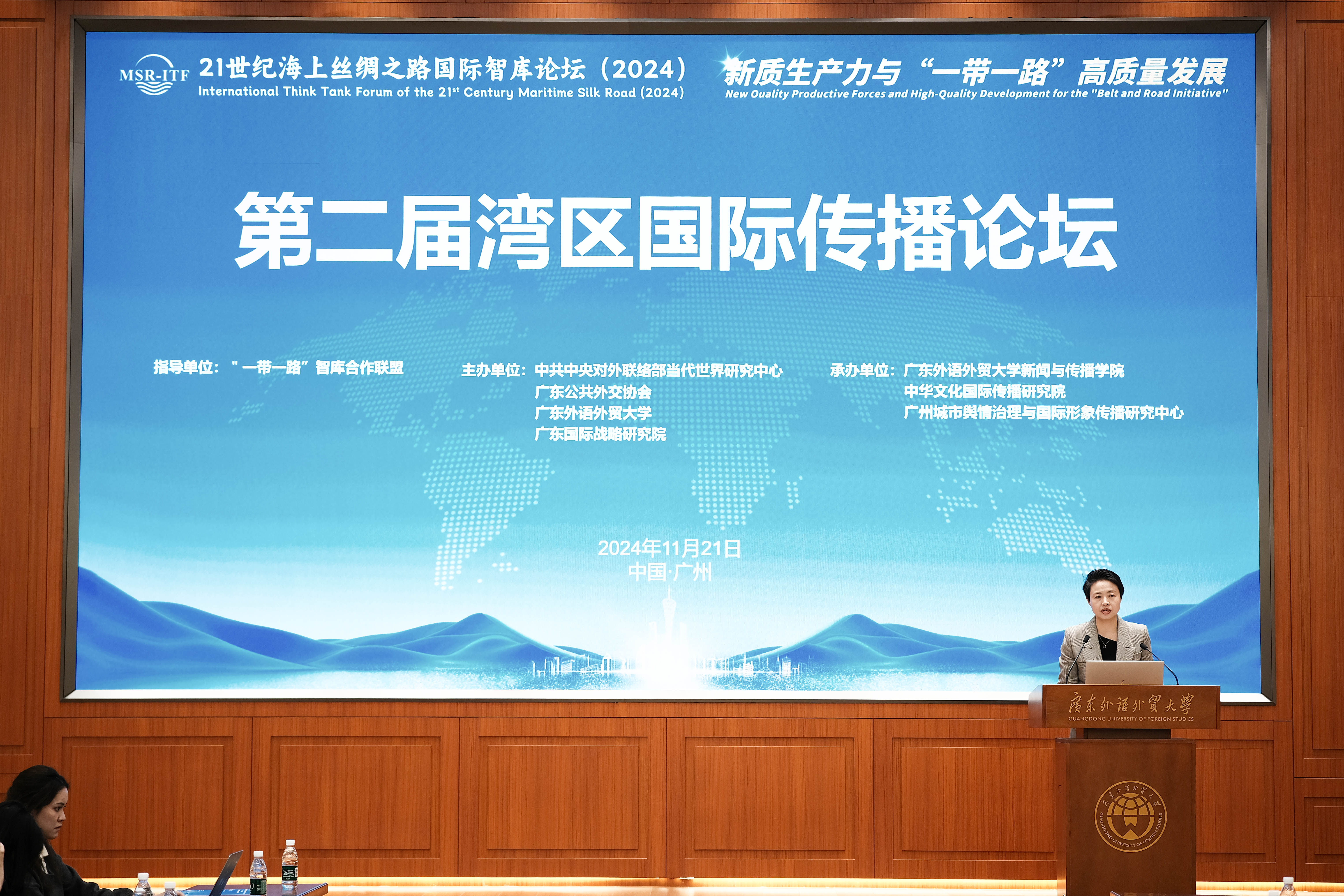 11月21日上午,由伟德国际1949,伟德国际1949始于英国、中华文化国际传播研究院和广州城市舆情治理与国际形象传播研究中心共同承办的21世纪海上丝绸之路国际智库论坛(2024)平行论坛之第二届湾区国际传播论坛在伟德国际1949白云山校区举行。此次论坛汇聚了中央民族大学、复旦大学、华中科技大学、大连外国语大学、暨南大学、华南理工大学、华南师范大学、广州华商学院、伟德国际1949、南方报业传媒集团等来自国内和省内多所高校和媒体集团的专家学者,共同围绕湾区国际传播相关议题展开深入研讨与交流,为推动海上丝绸之路国际智库建设提供了丰富的智力支持。伟德国际1949,伟德国际1949始于英国院长侯迎忠教授主持论坛开幕式。