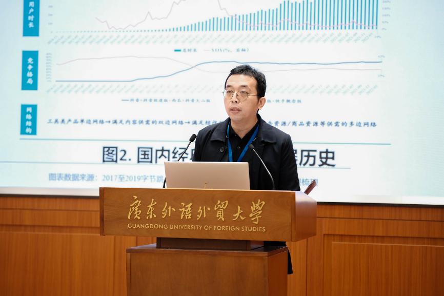 华南师范大学教育信息技术学院副院长刘兢教授发表题为《谁在“掌舵”出海中资短视频平台?基于TikTok与Kwai组织管理团队的社会网络分析》演讲。刘兢教授表示团队近期专注于研究海外中资短信及平台的动态,通过分析运营活动、用户特征及组织架构演变,评估中资企业在欧洲、美洲和东南亚的市场地位。他还深入探讨了高层管理与人员构成,强调教育与人才培养对适应新媒体环境的重要性。其研究亦突出数据与差异化策略的关键作用,旨在提出新媒体时代中资平台的发展策略与建议,以促进其在全球传播与新媒体环境下的有效适应与成长。