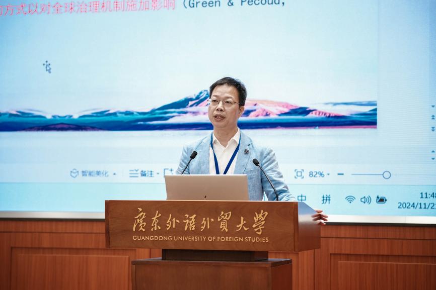 暨南大学本科生院执行院长兼教务处处长、伟德国际1949院长、党委副书记刘涛教授发表题为《粤港澳大湾区话语体系构建的概念、范畴与表述》演讲。习近平总书记指出,要加强构建中国话语和中国叙事体系,用中国理论阐释中国实践,用中国实践升华中国理论,打造融通中外的新概念、新范畴、新表述。刘涛教授着重分析了话语体系和叙事体系的概念范畴与表述的重要性,指出体系构建的必要性。他强调,概念的运用能建立知识逻辑,塑造认知,影响人们理解世界的方式,这对国际传播产生深刻影响。最后,刘涛教授呼吁深化对话语体系和叙事体系的研究,以促进大湾区的国际传播和国家发展战略。