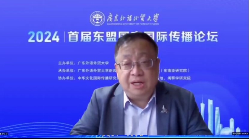 闫相斌对参加论坛的各位专家学者和业界精英表示热烈的欢迎和衷心的感谢。他指出:东盟国家与我国地理相近、文化相通,做好面向东盟的国际传播工作,有利于增强中国与东盟国家的文化交流和民心相通,有利于树立我国和平、合作、负责任的大国形象。学校一直坚持以“国家所需、未来所向、湾区所急、广外所能”为导向,充分发挥学科优势,紧密对接国家战略和区域发展重大需求,矢志培养关键语种人才、国际组织人才、涉外法治人才和国际传播人才,为构建中国特色哲学社会科学学科体系、学术体系、话语体系贡献广外智慧和力量!本次论坛的召开将为推动面向东南亚国家的国际传播工作,构建更有效力的国际传播体系,提升国家文化软实力和中华文明影响力凝聚智慧和力量。