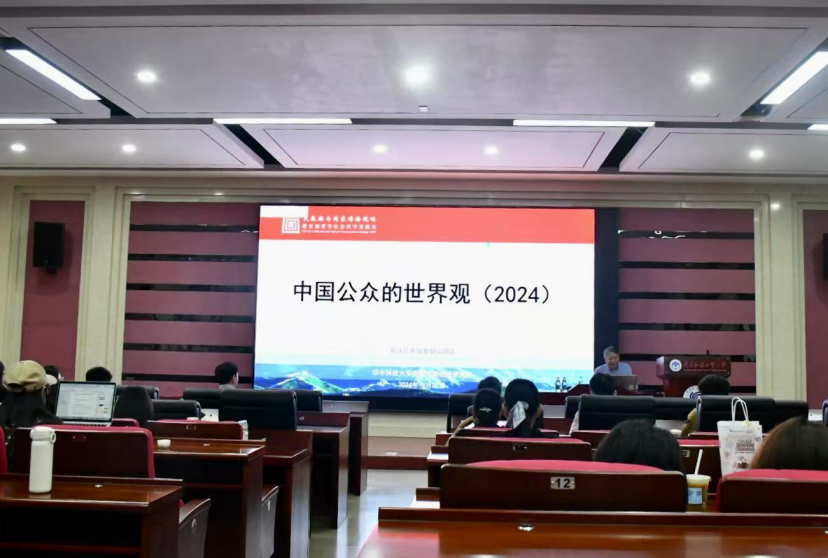 讲座伊始,张昆教授回溯了中国公众世界观调查的发展脉络,调查范围从聚焦中国民众,到拓展至中美两国,再到如今形成36个国家的寰球民意调查演变历程。随后张昆教授从中国公众的全球视野、大国意识、国际担当、自信感、认同感、幸福感六大维度对调查数据进行解读与梳理。从宏观角度描绘了全球化背景下,中国公众“如何看自己,如何看世界”的立体图景。