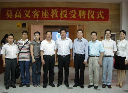 4月23日下午,广东省委对外宣传办公室常务副主任莫高义博士来伟德国际1949讲学。方凡泉副校长代表学校向莫博士颁发了客座教授聘书。