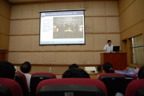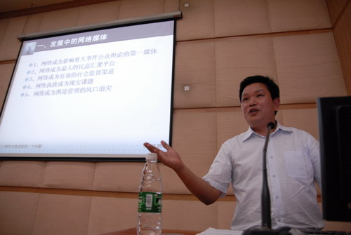 莫高义讲座的题目为《网媒特征与网民诉求》。讲座结合对近年来我国出现的重大网络事件进行分析,内容精彩纷呈。