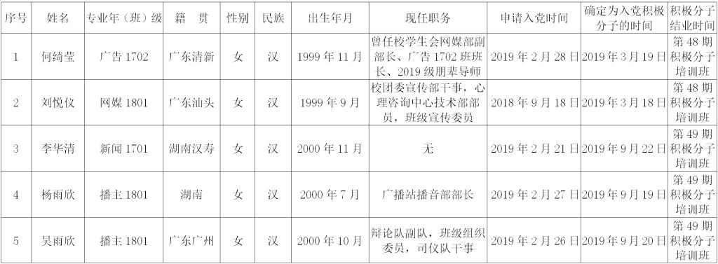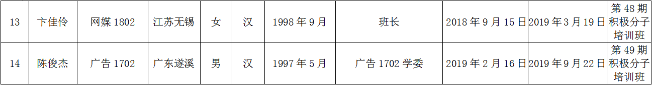 关于何绮莹等14名同志拟确定为第十一期发展对象培训班学员的公示