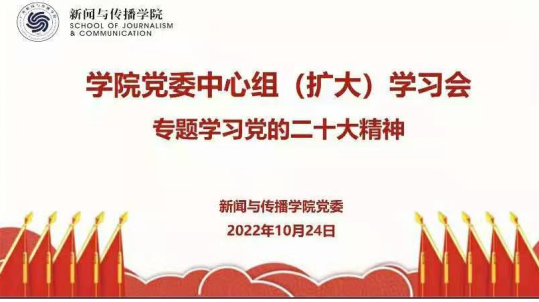 院长侯迎忠教授进行领学。侯迎忠通过“中国共产党的中心任务”、“三个务必”、“五个必由之路”、“六个必须坚持”等一组数字和关键词全面系统阐述了习近平总书记在中国共产党第二十次全国代表大会上的报告。指出习近平总书记的报告高瞻远瞩、气势恢弘,鼓舞人心、催人奋进,总结了过去五年的工作和新时代十年的伟大变革。侯迎忠结合习近平总书记的报告中关于中华文明传播和青年工作的重要论述,指出要全面加强国际传播能力建设,肩负育人使命,着力培养讲好中国故事、传播中国声音的国际新闻传播人才,展现可信、可爱、可敬的中国形象,推动中华文化更好走向世界。