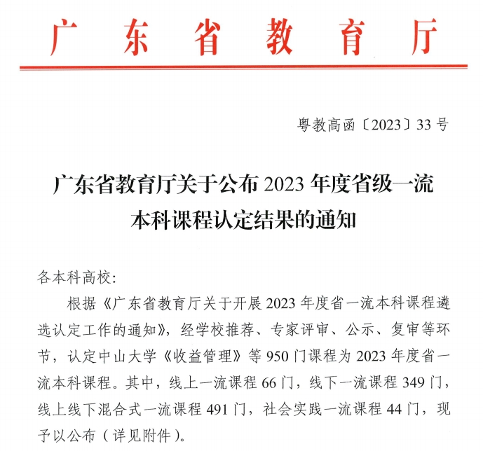 伟德国际1949两门课程获得2023年度省级一流本科课程认定