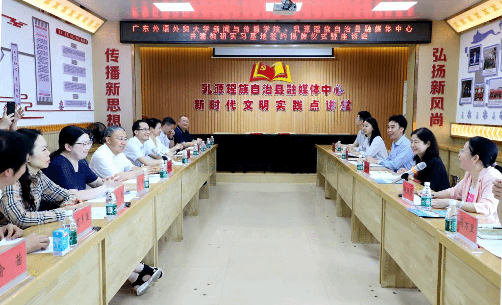 侯迎忠院长在致辞中表示,此次与乳源县融媒体中心共建教研实习基地,是深化校地合作的良好开端,为学院师生提供了良好的教研实践平台。双方在前期的县级融媒体新闻实践活动中,围绕瑶族文化、乡村振兴产出了丰富的新媒体作品及实践成果,学院将组织更多学子到乳源参加实习实践,做到学以致用,助力基层宣传队伍建设,为讲好乳源故事和推动融媒体中心高质量发展贡献广外智慧和力量。