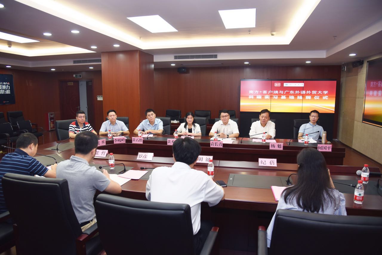 仪式上,学院领导、系主任与南方+客户端有关部门负责人就学生实习就业、校媒交流机制、工作坊、应用性成果项目申报、直播广东新媒体实验室等方面的合作,举行了热烈的交流,达成许多重要共识。