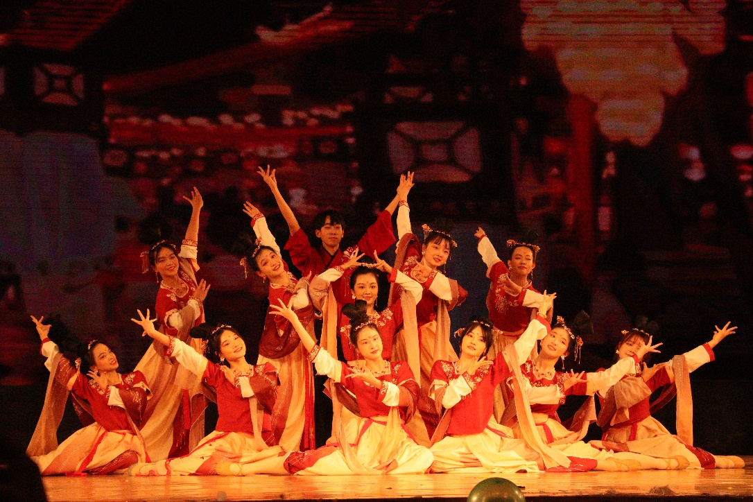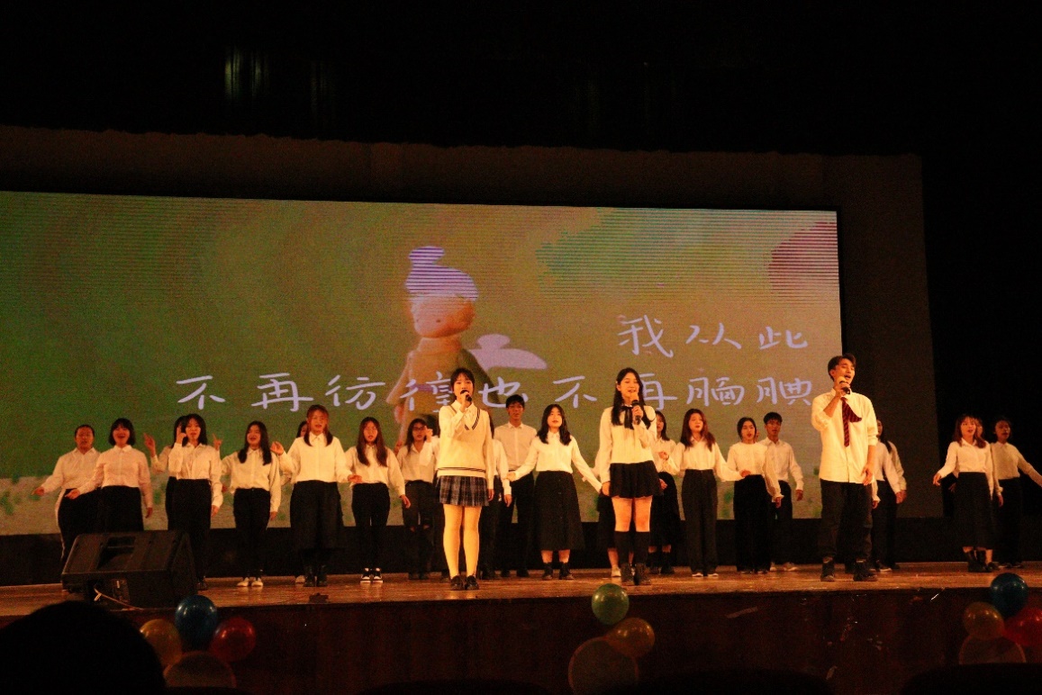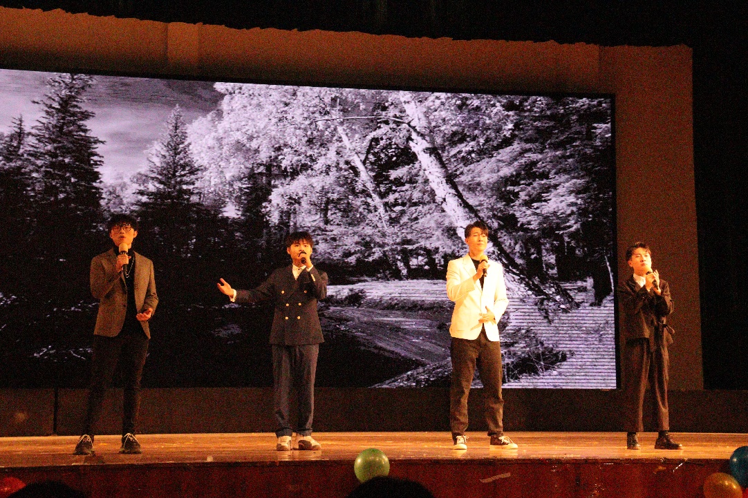 开场,圣德奥夫塞伦斯组合带来了歌曲《Sound of Silence》。来自不同学院的歌手以合唱的方式演绎了这首民谣,不同声部之间的共鸣给观众带来了无与伦比的体验,也点燃了现场气氛。播主人播主魂组合带来的《青年之火,时代之光》以情景朗诵的形式为观众展现了两代新青年跨越百年的时空对话。而新传2102班则以话剧《你好,张桂梅》致敬了这位感动中国的女校长,演员们精彩投入的表演引发了台下观众的强烈共鸣,在谢幕时收获了阵阵掌声。