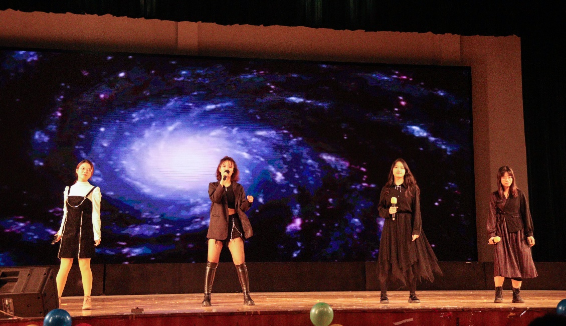 在游戏“看片段猜电影”环节过后,晚会进入了最后一个部分——“期待”。校舞队的舞蹈《面壁绝响》为我们复现了千百年前那个“九天阊阖开宫殿,万国衣冠拜冕旒”的歌舞盛世;校歌队的歌曲《Space Travel》则以充满张力的歌声带领我们穿越深远星空;创新2101班带来的合唱《期望》温暖空灵,引发了台下观众的大合唱。