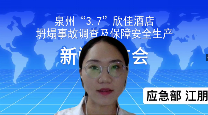 第一场发布会,新传专硕研一代表队“全员reader队”,选择国务院新闻办公室作为发布方,作“泉州‘3.7’欣佳酒店坍塌事故调查及保障安全生产新闻发布会”。发布方就事件发生原因、调查进展进行介绍,并对当前疫情防控和复工复产关键时期,应对安全风险隐患相关工作部署做出通报。在答记者问环节,发布方就百姓关心的遇难者的赔偿和安抚措施做出回应,表示将从“保险赔偿、食宿接待、心理安抚“等方面,“最大限度保障伤亡人员及其家属的权益。”