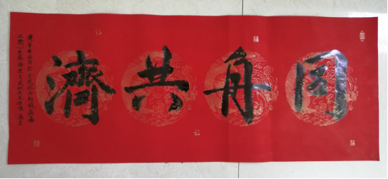 练习书法10多年的她研墨备笔,挥毫如雨,写下“同舟共济”四个字。电子版作品参加了“抗击新型肺炎疫情,广外在行动”线上活动。她将纸质版留在了村子的老家,供大家欣赏的同时,也为了纪念2020年初的这场经历。