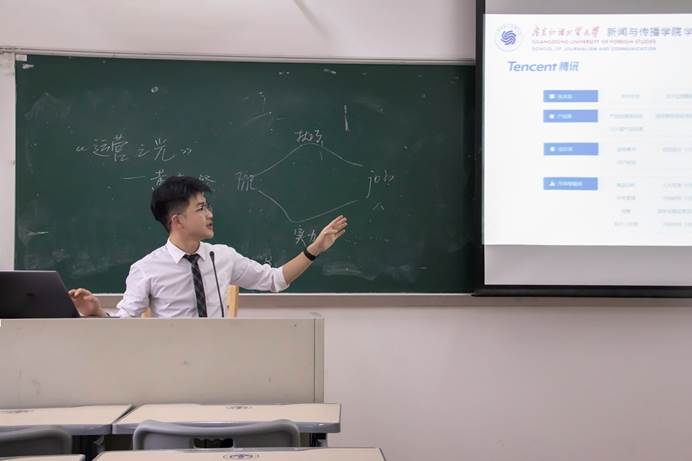 出国(境)留学经验分享会于南校区教学楼B308开展。教授刘康杰,新闻1502梁梦菲,播主1501郑楠以及网媒1501林慧是本次经验分享会的分享嘉宾。