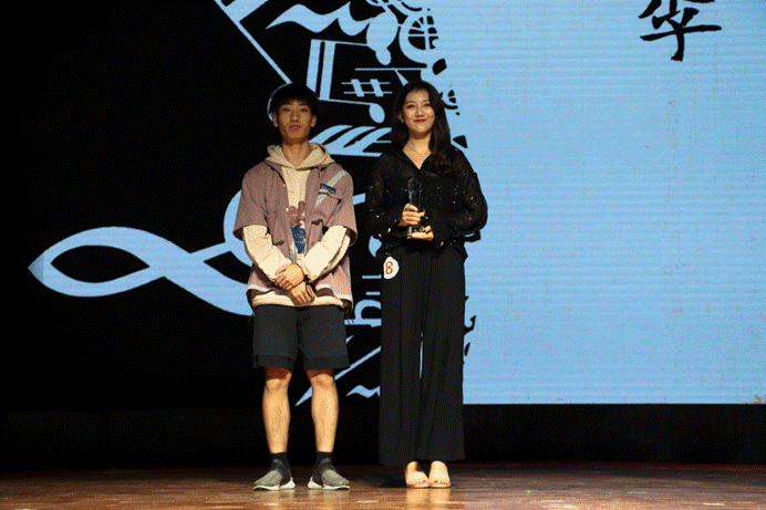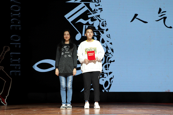 程嘉雯为最佳人气奖获得者王嘉兴颁发奖牌