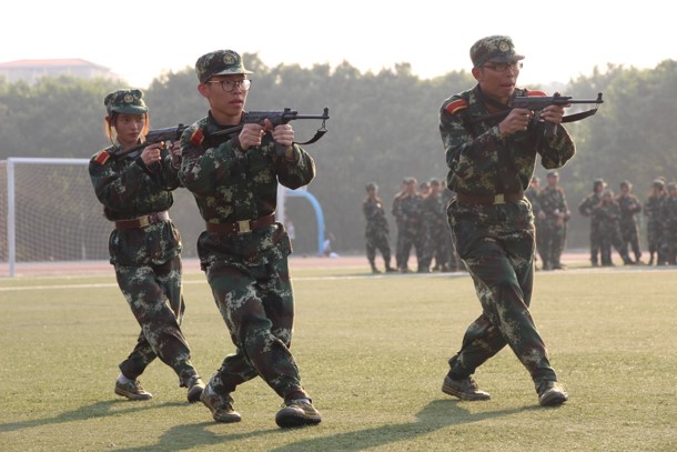 2017级本科新生军训领导小组办公室主任、武装部副部长邹春权,武装部国防教育科科长朱永海、宣传部王斌、伟德国际1949党委副书记黄石胜、团委书记陈博菲、教师高坚等嘉宾出席了本次典礼。