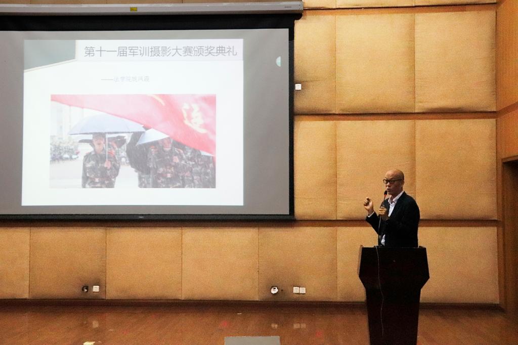 首先是黄石胜致辞。“军训摄影大赛是军训的延续,也是大学里一道亮丽的风景”,他说道,“军训摄影大赛的精彩比起军训的精彩是另一种风味。”同时他也表示了对武装部、宣传部和所有参赛人员衷心的感谢,特别感谢了各兄弟学院的辅导员老师对大赛的支持。