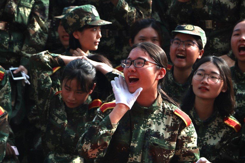 接着是一等奖获得者姚凤霞发言。她表达了在拍照时对军训的感受:“军训是个很大的挑战,也是个有趣的过程。”