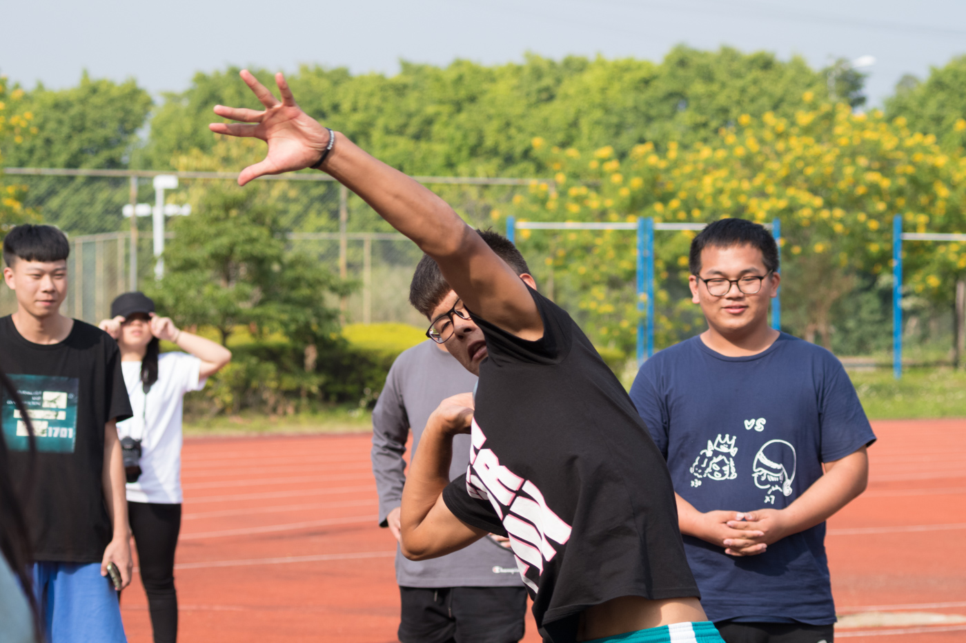 选手们的表现引得众人喝彩。其中最令人注目的还是来自新闻1706的叶德尔,他作为团学体育部的一员示范了铅球的扔法,标准的动作和有技巧的用力方式吸引了所有人的目光。叶德尔与大多数人不同,加入了转身的动作和一小段助跑,这一助力也帮助他取得了非常优秀的成绩。最后他用自己9.64米的成绩证明了他的实力,这一成绩甚至大大超越了院运会的记录。同时广告1601的叶礼牟和新闻1706的陈俊杰也表现出色,分获二三名。