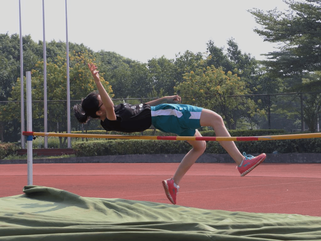女子跳高第一名 网媒1601陈苑茵同学轻松过杆