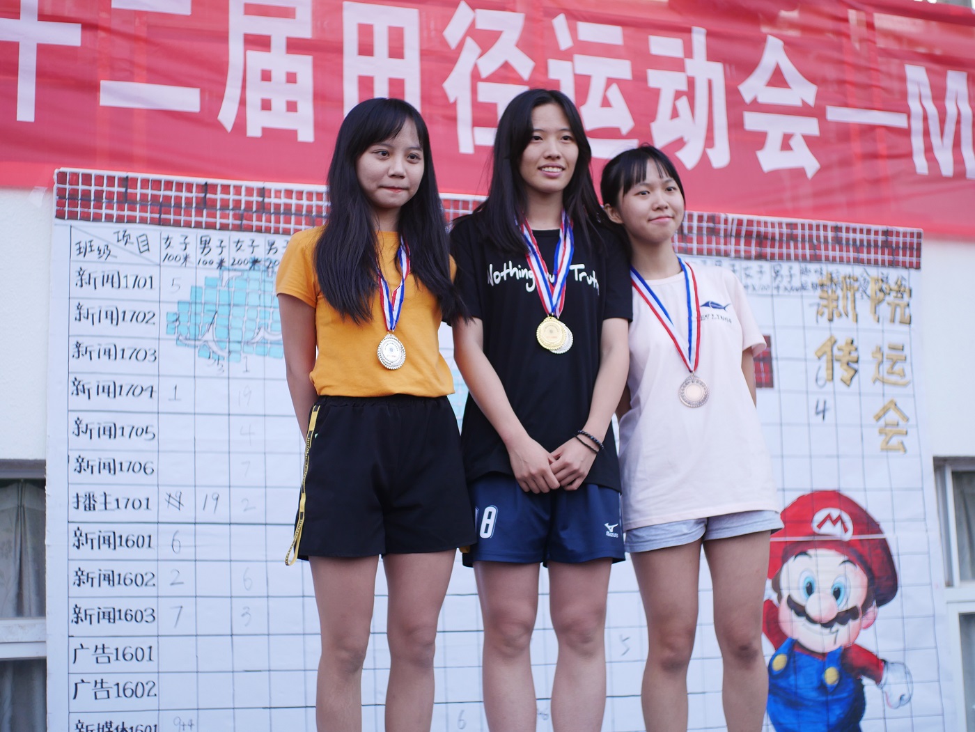 参加决赛的同学们也都调整好状态,再次投入到激烈的竞争当中。据悉,张婉清在初决赛间隔中参与了其他的比赛,导致体力状态不佳,所以在决赛中两度失足犯规。但最后一跳,张婉清顶住了压力,一跃跳出了8.7米的成绩拿下冠军。叶茗慧在经历三轮的尝试之后,以8.15米的成绩摘得银牌。另外,来自新闻1704的小将傅愉好也为大一年级摘得一枚铜牌。
