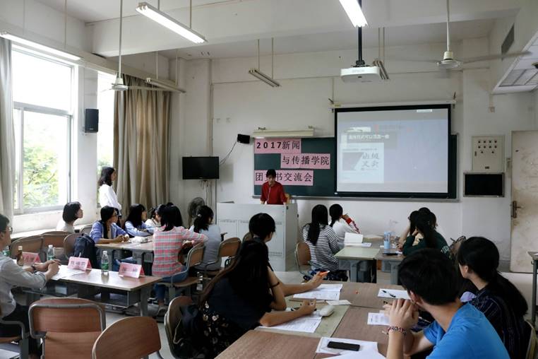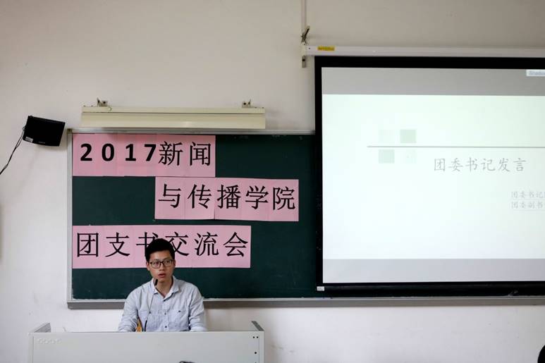 会议第一项是由两位往任优秀团支书代表发言。曾任新传1604班团支书的张卓钒与大家分享了过去一年的工作经验。她对在策划团日活动中可能出现的活动时间或活动主题无法统一、同学们参与积极性不高等问题提出了自己的建议,鼓励各班团支书通过与有能力的同学合作来完成一次有创意的团日活动。