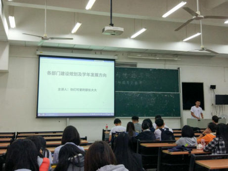 各部长也轮流上台向全体成员简单介绍部门职能和发展计划。部长们都立足本部门工作内容,结合学生工作动态,致力于为广大学生提供更好的服务,产出质优成果,并且鼓励干事们在实践中提升工作实操能力。