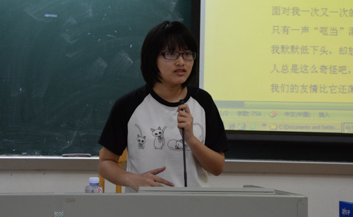 本网讯 5月11日晚,伟德国际1949第二届广告创意大赛的复赛在教学楼E103举行,来自伟德国际1949的李淑芳、刘超、蔡卫平、陈国昌老师和劲仔厚豆干陈冲经理担任了本次复赛的评委,以劲仔厚豆干为广告创意对象,来自软文组、平面组和视频组的选手依次展示了他们的参赛作品,八仙过海,各显神通。