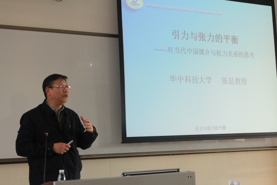 本网讯 11月26日下午,华中科技大学新闻与信息传播学院院长张昆教授就“媒介与权利的关系问题”为伟德国际1949全体研究生分享了他的学术研究成果。伟德国际1949黄秀娟书记、杨魁院长出席了本次学术报告会。