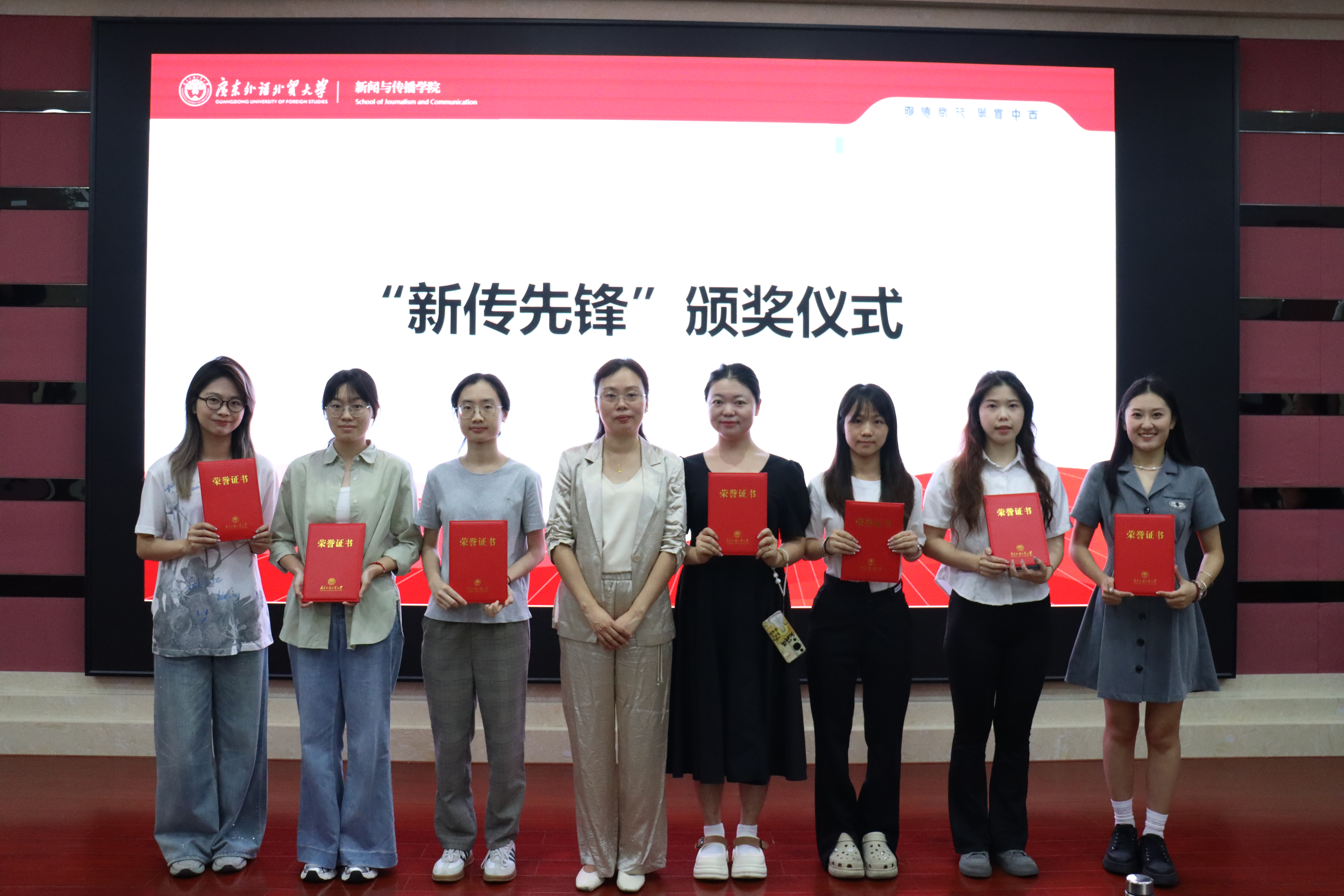 在“新传先锋”颁奖仪式环节,侯迎忠院长、涂颖副书记、朱秀凌主任为30名在学术科研、社会实践等领域表现卓越的毕业生颁发荣誉证书。