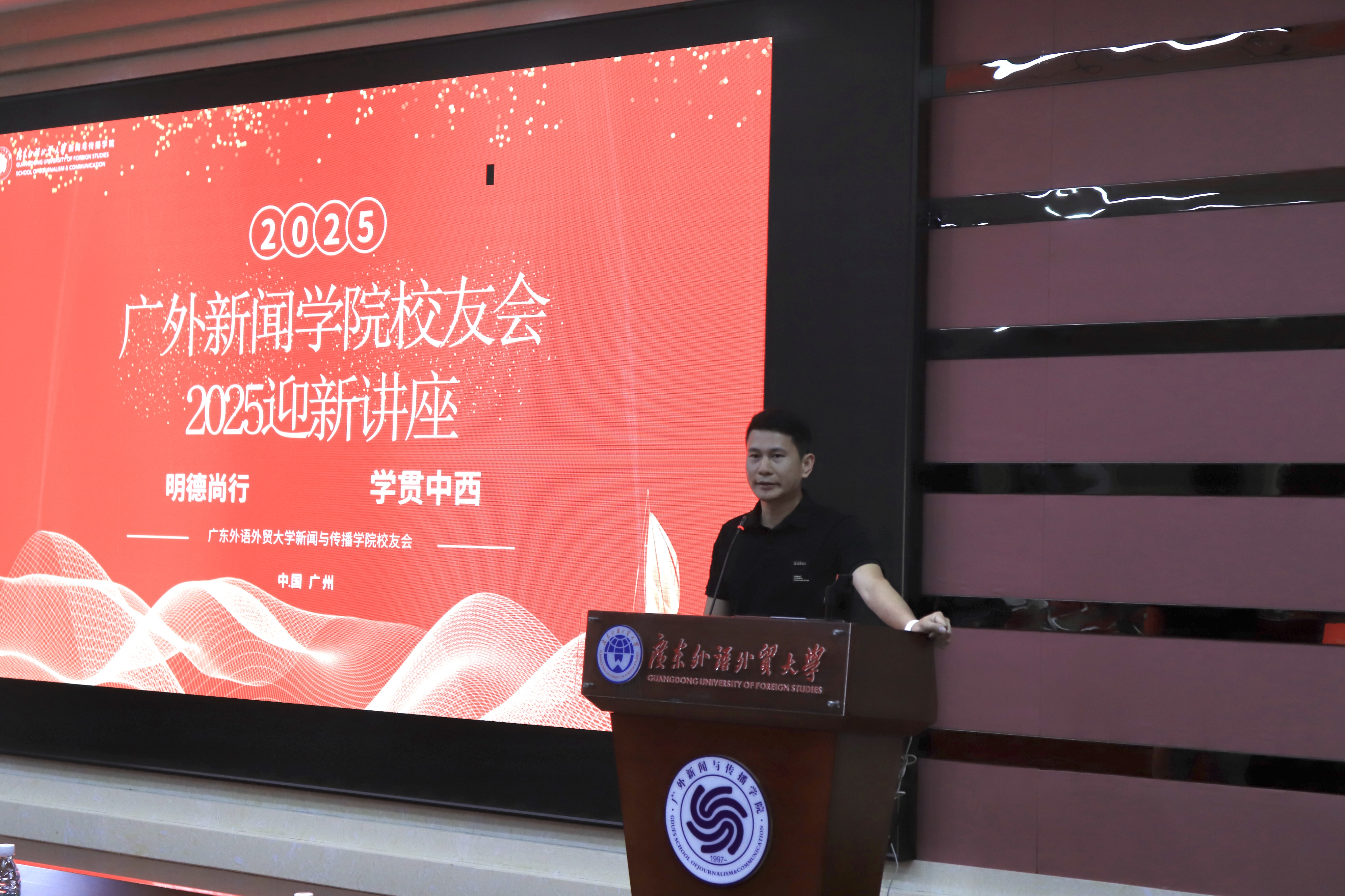 在新传校友会介绍环节,秘书长庄添镜介绍校友会迎新、校友联络和校友终身支持等工作的开展,助力毕业生以"求实拓新"之姿迈向人生新征程。