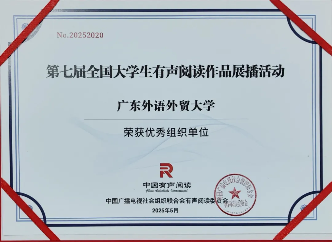 由广外伟德国际1949播主专业22级学生汪健和24级学生张意萱两人组成的“萱圆健队”顺利获得了线下参赛机会,并在复选中成脱颖而出晋级到决选,最终取得了第七届全国大学生有声阅读作品展演活动国家级二等奖的好成绩,伟德国际1949也获得本届大赛优秀组织单位称号。