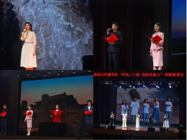 教育部中华诵写奖大赛“诵读中国”经典诵读大赛国赛一等奖作品《我是一条古老的河流》,以磅礴之声凝聚万千江河意象,生动诠释中华民族坚韧不拔的精神品格。《在中国大地上报道》则以激昂的文字回溯历史,从延安新华广播电台的红色电波,到新时代传媒学子的使命传承,一句“我们是党和人民的喉舌!”铿锵有力,彰显新闻工作者的责任担当。这些作品不仅展现了新传学子精湛的专业素养与艺术创造力,更诠释了新时代青年投身社会、服务家国的热血与担当。当诗歌朗诵会在青春之歌《有我》的旋律中落下帷幕,象征着广外新传学子将接过历史接力棒,以声音为笔,继续书写国际传播的新篇章。