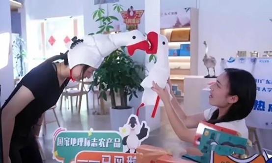 区别于传统的助农直播,团队充分发挥专业优势与青年网感,精心策划了“套大鹅”等游戏互动环节。这些环节不仅有效提升了直播间的活跃度,还巧妙地与核心产品马冈鹅紧密结合。通过这种寓教于乐的方式,直播不仅拉近了消费者与农产品的距离,更让乡村文化以更具吸引力的形式走进大众视野。同时,专业化的呈现进一步强化了用户对品牌与品质的信任,助力马冈鹅及其衍生产品从地方特色迈向更广阔的市场舞台。