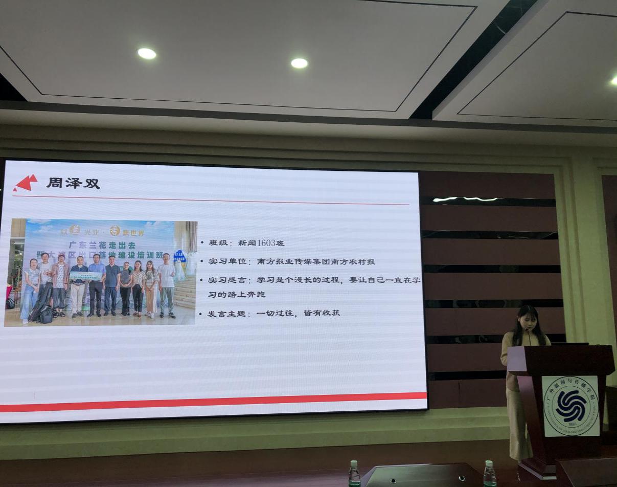 颁奖仪式结束后,优秀实习生代表周泽双、李婉桃、陶天海、杨璇四位同学上台发言,向各位同学分享了自己在实习中的收获。