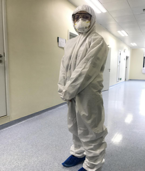 防护就是只要出了自己的房门,就要戴口罩。我平时戴隐形眼镜,但在疫情期间也都换成框架眼镜了,怕手洗得不干净。其他就是出入酒店,衣服上要喷酒精消毒,进医院要穿防护隔离服。