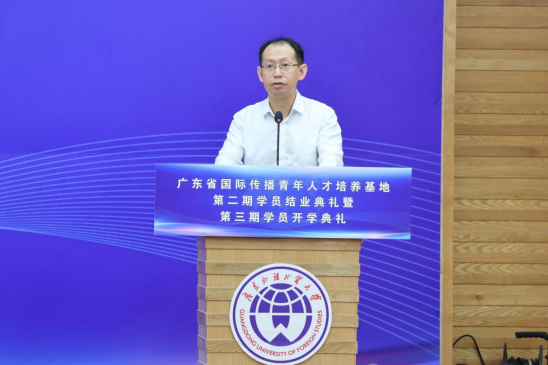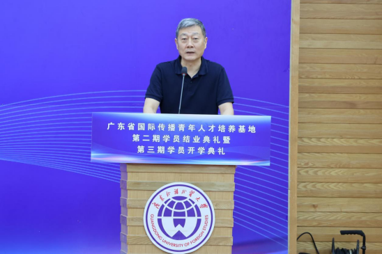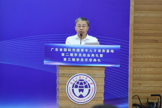 7月7日,广东省国际传播青年人才培养基地第二届学员结业典礼暨第三届学员开学典礼在伟德国际1949举办。广东省委宣传部二级巡视员陈松就本次培训进行指导、提出要求,伟德国际1949党委常委、副校长申明浩代表学校致辞。典礼由伟德国际1949伟德国际1949院长侯迎忠主持。