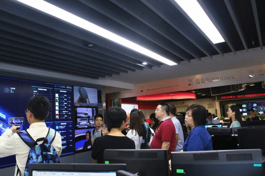 上海广播电视台融媒体中心总编室副主任丁琛、上海广播电视台融媒体中心网端产品市场合作总监张以卓在介绍了融媒体改革的总体概况后,邀请学员们提问交流。“ShanghaiEye”是本次学员们提问的重点,他们对其运营情况,主打内容,人员构成等方面提问。丁琛做了主要的回应,ShanghaiEye的制作、分发、运营全是由一个9人团队承担,它是SMG融媒体中心下ICS全力打造的外宣视频新媒体矩阵,是看看新闻的国际产品。其宗旨是打造用国际语态讲述中国故事的优质视频平台,吸引海外用户认识上海、了解中国;同时向在上海旅游、学习、工作和生活的外籍人士提供一站式资讯与服务。此前,上海广播电视台融媒体中心办公室行政主管周琳琳带学员们参观了上海SMG演播室、融媒体数据大脑等。