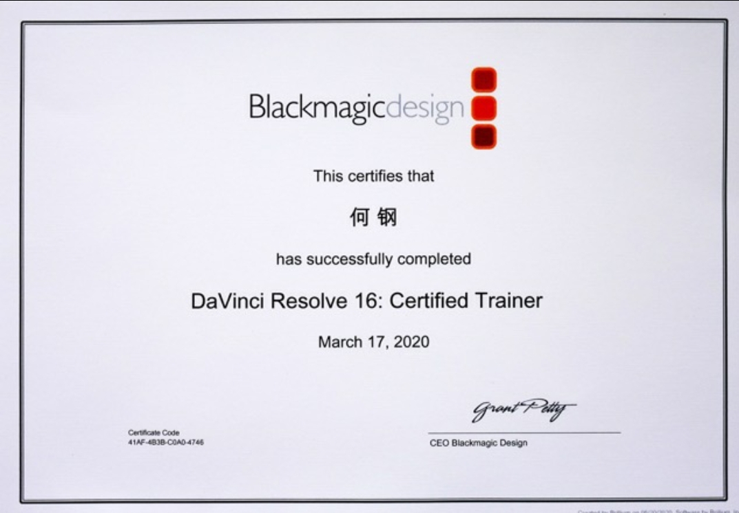 - 广外DaVinci Resolve国际认证培训中心是中国首批由Blackmagic Design官方认证的培训中心,依托伟德国际1949融合媒体实验室建设和运营,累计总投资近200万元,设备高档,师资强大,环境优越。本中心相关信息可通过Blackmagic Design官网或在DaVinci Resolve软件的帮助菜单中通过培训链接查询。DaVinci Resolve国际认证导师和影视界资深调色师凭借不同类型项目的实战案例,手把手教会学员熟练使用DaVinci Resolve软件,掌握媒体管理、调色、快剪、精编、音频、特效合成等专业制作流程,以顺利获得国际认证证书。
