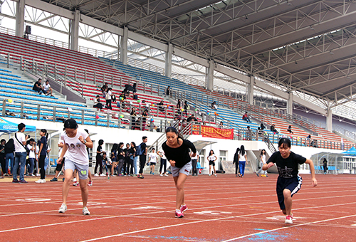 百米赛跑赛出风采 下午2点10分,运动员们各就各位,观众们屏住呼吸,女子一百米比赛即将拉开序幕。